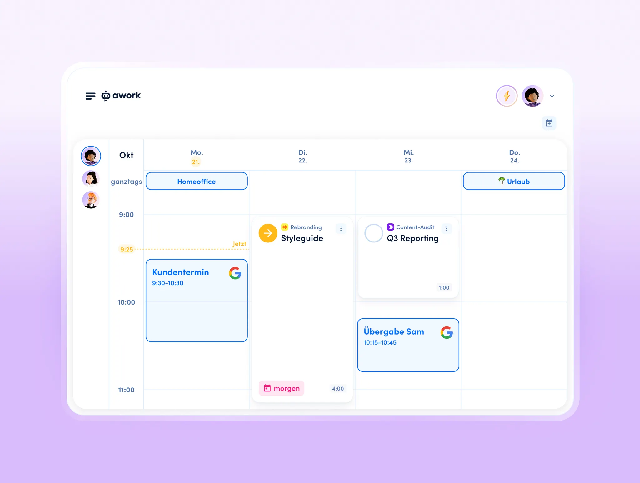 Alles auf einen Blick: Termine, Tasks und Projekte im awork Kalender.