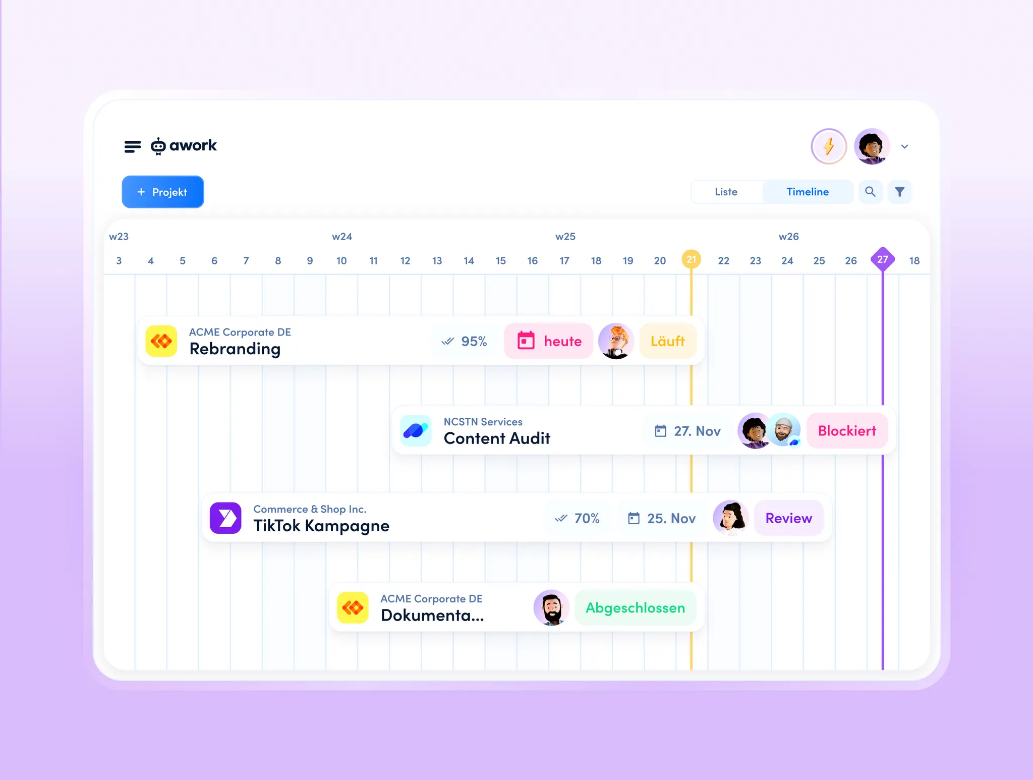 Klare Projektplanung in awork – alles auf einen Blick.