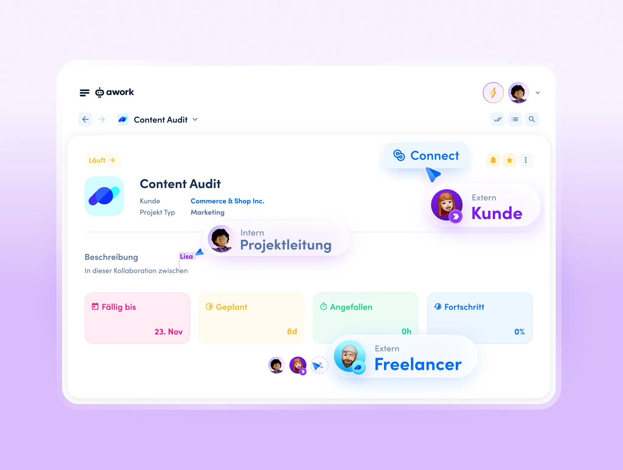 Einfache Kollaboration dank awork Connect – intern wie extern.