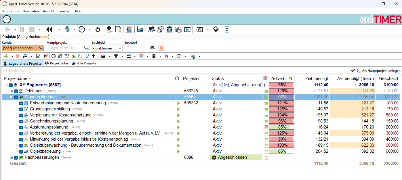 Projektzeiterfassung in Xpert-Timer